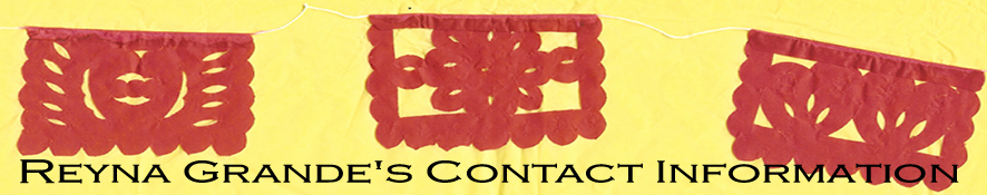 Email Reyna: reynagrande@yahoo.com Literary agent: Adriana Dominguez, adriana@fullcircleliterary.com Full Circle Literary, LLC publisher: Atria Books/Washington Square Press, a division of Simon & Schuster Atria's Publicist: jessica.purcell@simonandschuster.com Editor's Assitant: todd.hunter@simonandschuster.com L.A. Publicists: Rita Hollingsworth at rita@rmhmedia.net, jeff@rmhmedia.net